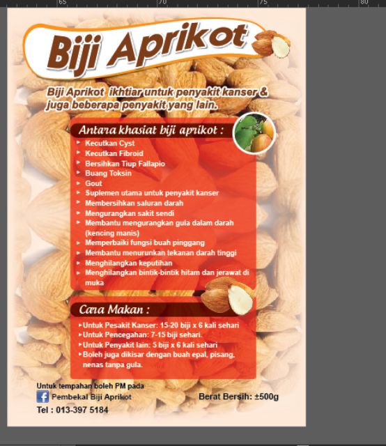 Dengan sering mengamalkannya dapat membantu anda mengawal beberapa jenis penyakit kronik yang merbahaya. Cara makan biji aprikot dan diet vitamin b17 untuk merawat kanser. Biji aprikot di import dari turki. Bermula dari pukul 4 pagi, 8 pagi, 12 tengahari, 4 petang, 8 malam dan 12 tengahmalam. 6 kali sehari, selang 4 jam. Vitaminnya tidak hilang sama sekali kerana hanya dikisar dan dikapsulkan sahaja. Untuk permudahkan cara permakanan biji aprikot ini. Di kunyah 65 kali kunyahan sehingga sebati dengan air liur. Ini akan membantu menuteralkan bahan aktif yang ada dalam kandungan biji apricot tersebut. Antara nutrient yang banyak terdapat pada biji aprikot … Sewaktu kunyah pastikan air liur keluar dengan banyak. *mulakan denagan memakan betik atau nanas 15~30 minit sebelum mengambil biji … Memang benar biji aprikot sememangnya pahit bila dikunyah.